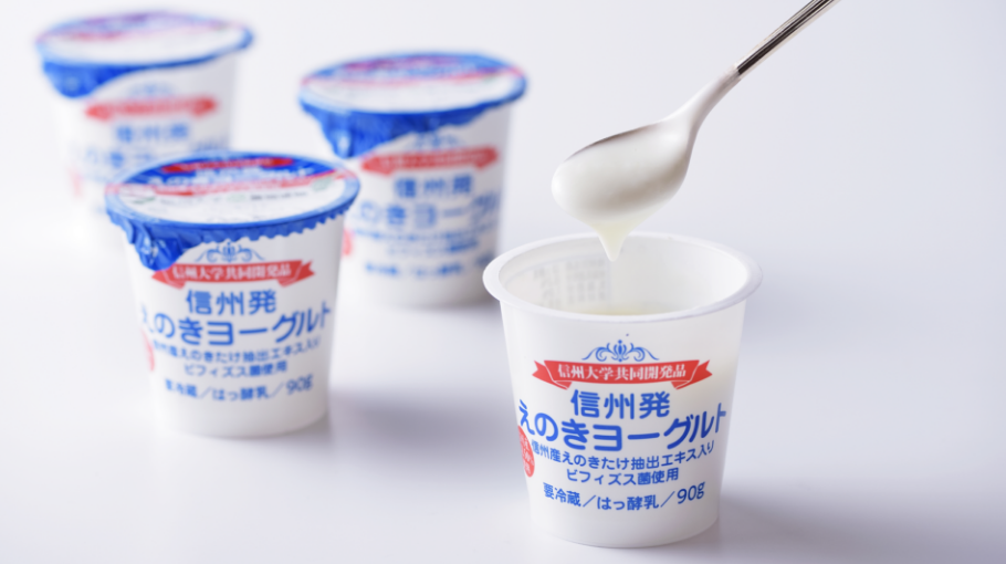「信州発えのきヨーグルト」は、信州大学との共同で開発した『ながのブランド郷土食』認定商品です。